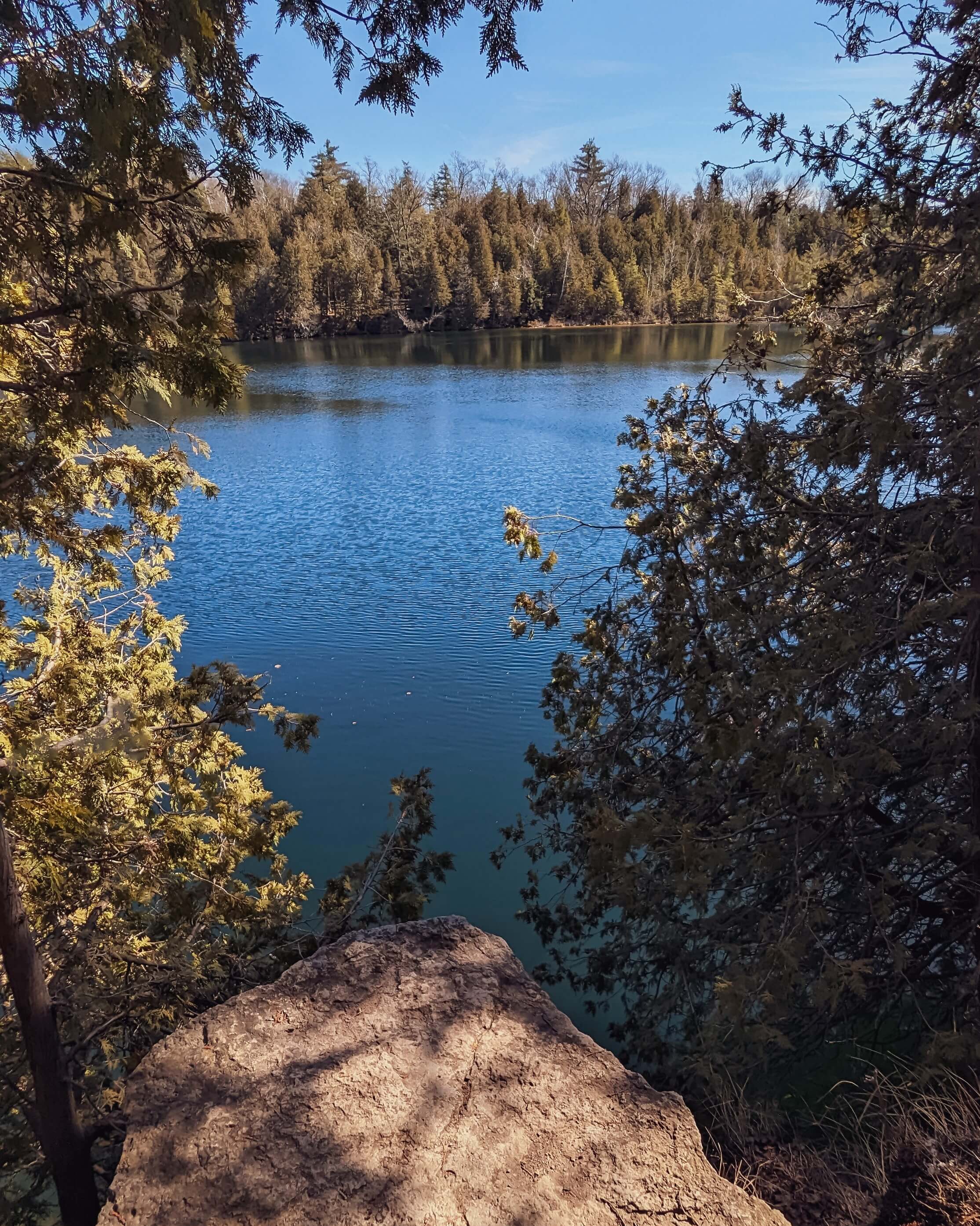Crawford Lake was chosen as a potential “golden spike” of the Anthropocene out of nine candidate sites from California to China to Antarctica. A collapsed limestone sinkhole, tiny but deep, locals used to say it was bottomless and that anything dropped into it would fall till the end of time. At 23 odd meters deep, it has a highly unusual depth to surface area ratio. As a meromictic lake, it has two distinct layers of water which do not mix due to their unique chemistry. The top mixolimnion stratum is fed by springs, a stream, rain and wildlife. Warmed by the sun and mixed by the wind, it circulates like an ordinary lake. The bottom monimolimnion stratum is fed by oxygen-rich water that seeps up from the bedrock. The dark, cold waters below are home to very little life, so seasonal couplets of sediment, each topped with a layer of calcite every summer, come to rest on the lakebed almost completely undisturbed and perfectly preserved. Capturing regional and global impacts from the atmosphere, these layers of sediment, called varves, form a historical record with a precise calendar as storied and legible as the rings of a tree trunk.